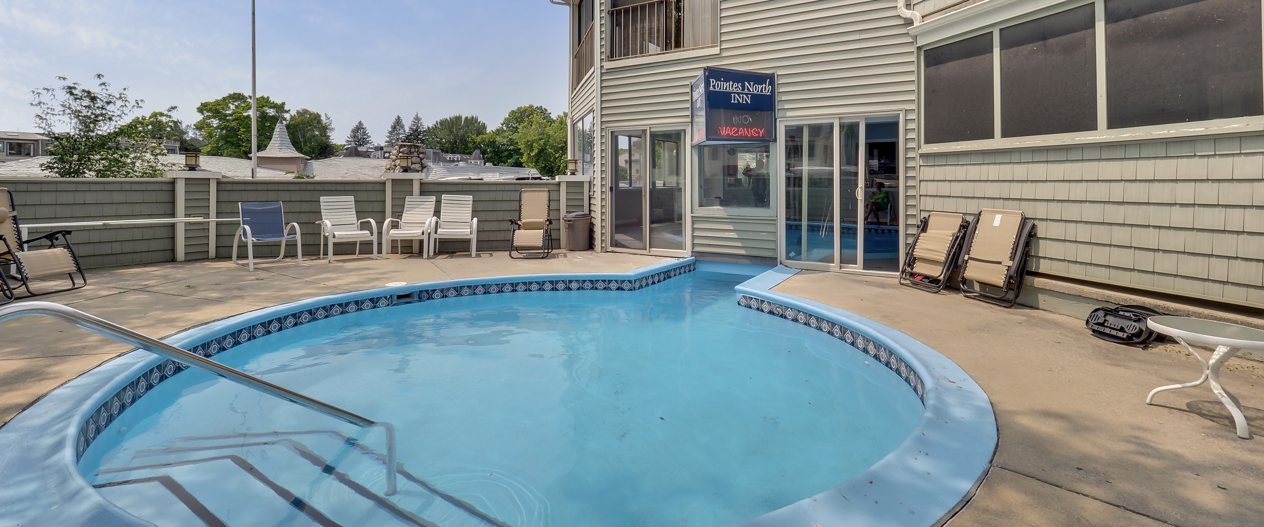 Pointes North Inn has high-speed Wi-Fi throughout the building and coin-operated laundry on the second floor. The lobby area has seating which overlooks the heated indoor/outdoor pool. The inside section of the pool is open year-round, while the outside section is closed off October to May.