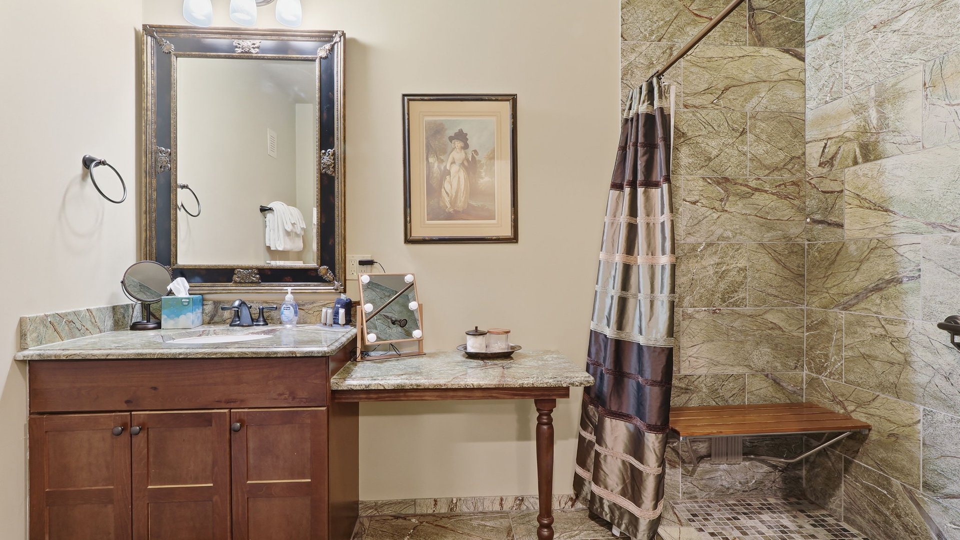 This unit is perfect for a Bridal suite and can be combined with unit 267 for additional space via an adjoining door. It has large bathroom counters and mirrors for the wedding party.