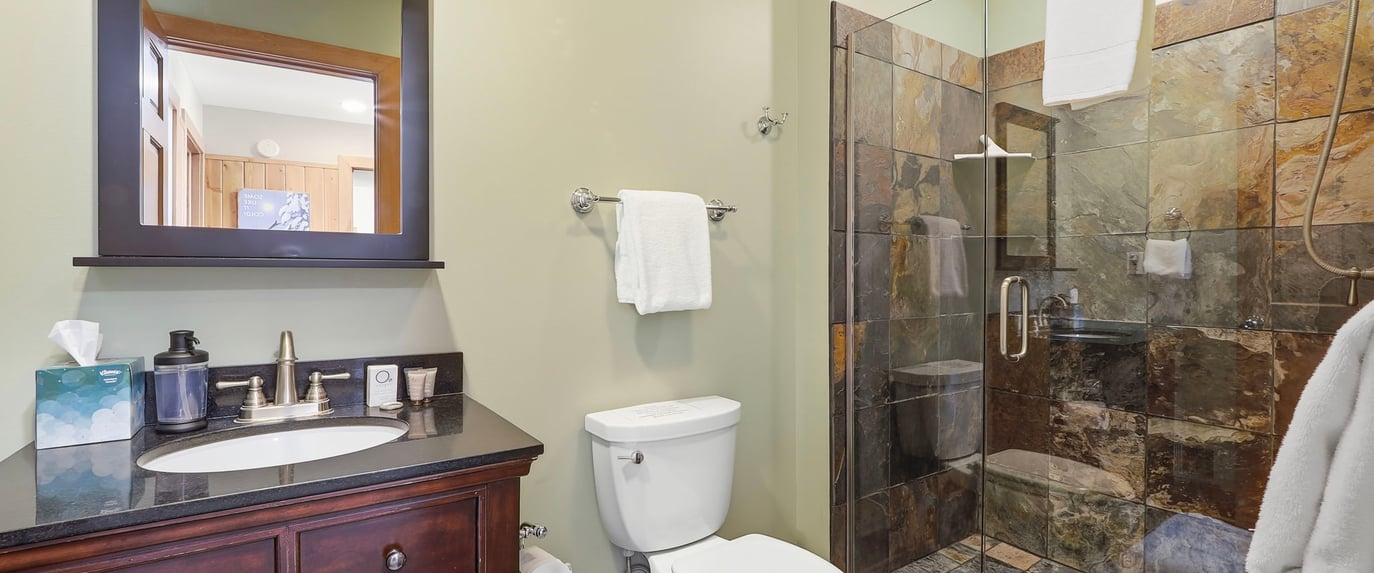 This unit also has a gas fireplace so you can cozy up on the couch at night and watch the night lights of the ski hills